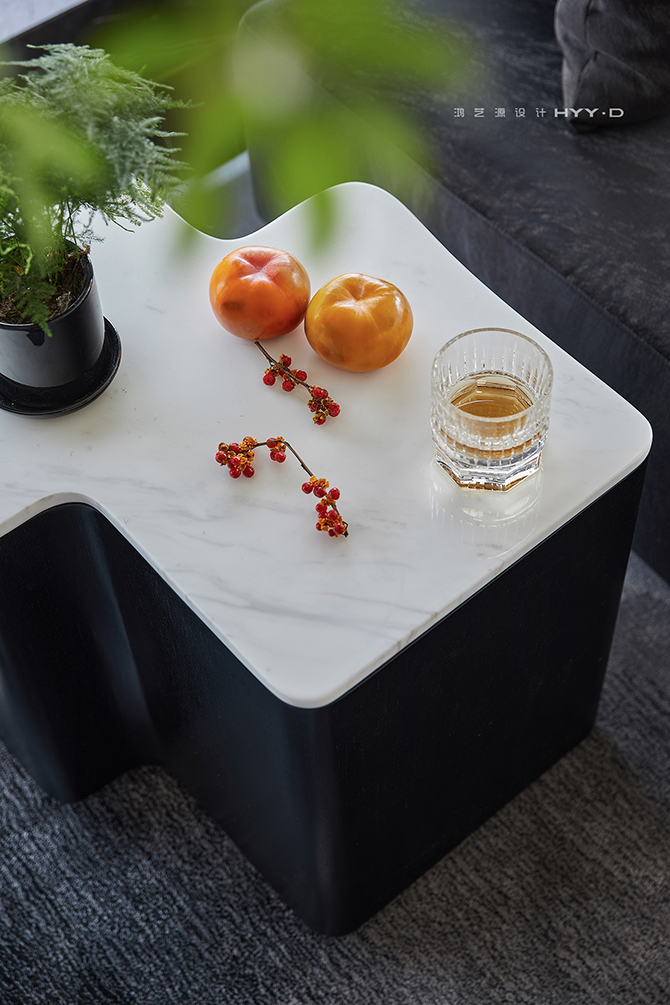 黑格尔认为,“美是理念的感性显现。”大面积水墨地毯无形中铺就一室的诗意风华,眼前沙河清丽,身后靠山长倚,传统文化所带来的美好寓意与现代设计手法结合赋予空间新的奢享体验。