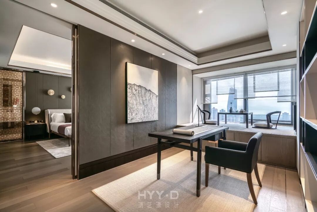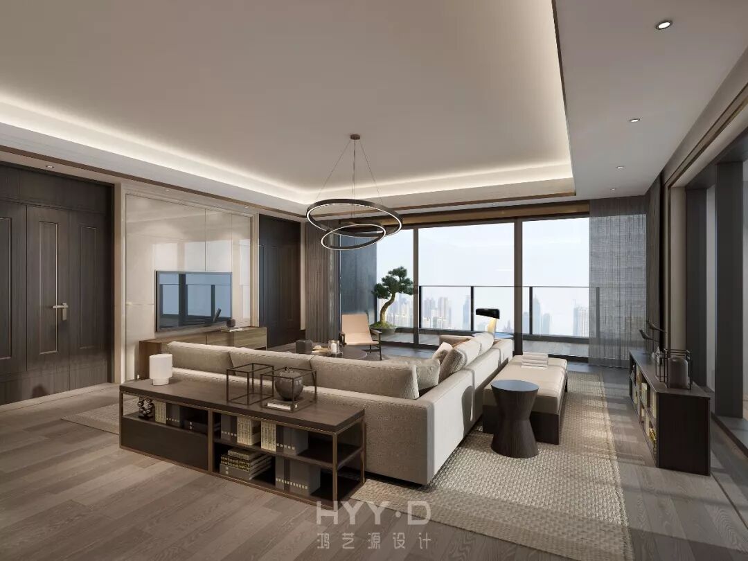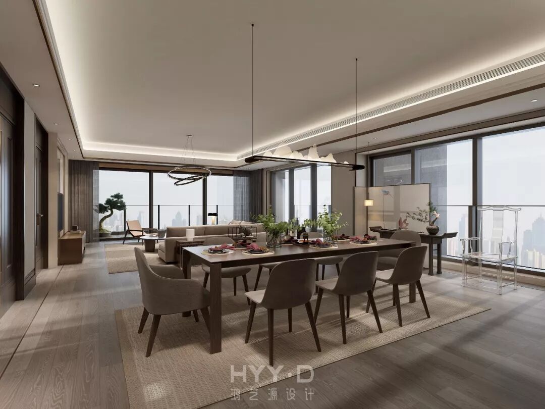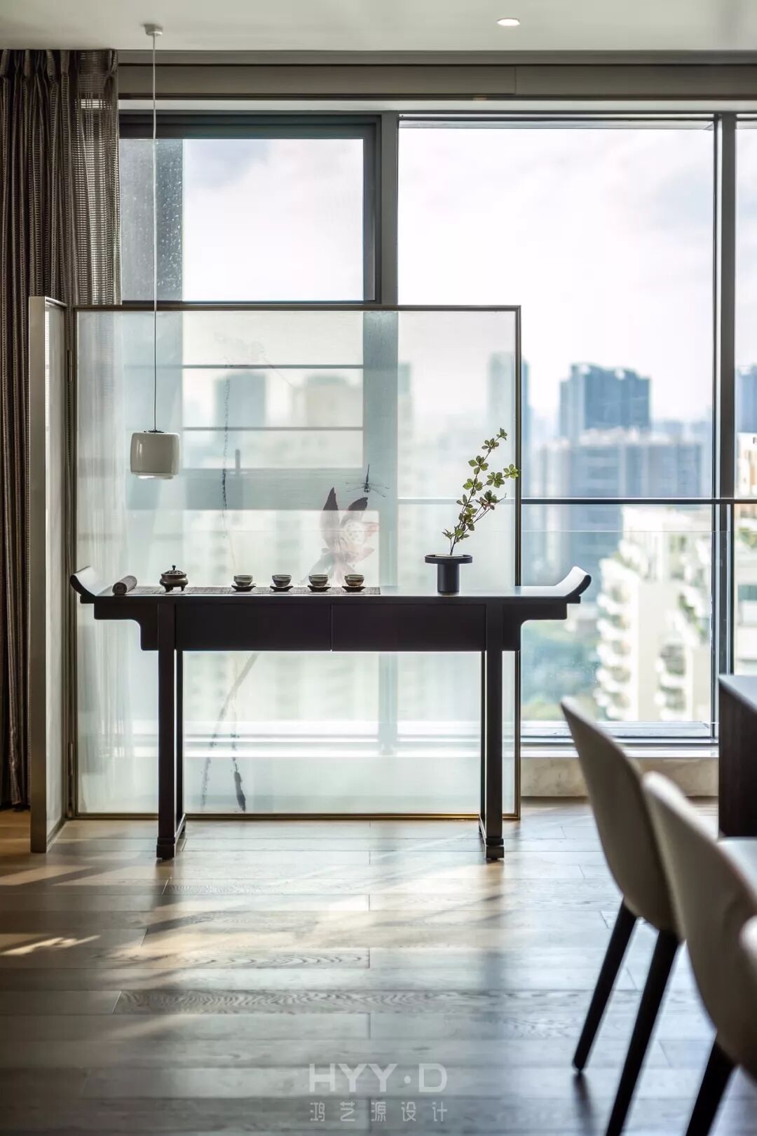 项目坐落于深圳华侨城的新天鹅堡,坐享海湾山湖的自然美景,380㎡私享空间,约7.2m宽的观景阳台,南北通透,三面采光,四室三厅,这样开放与独立兼顾的空间,给了设计与生活多种互动的可能性。业主是一对恩爱夫妻,他们对清雅闲适的生活有着深深的渴望。鸿艺源设计将中式情韵以简雅静宁的格调呈现出来,让居者在木作的纹理、阳光的渗透、清茶的幽香中,品味生活的烟火气与安适感。
